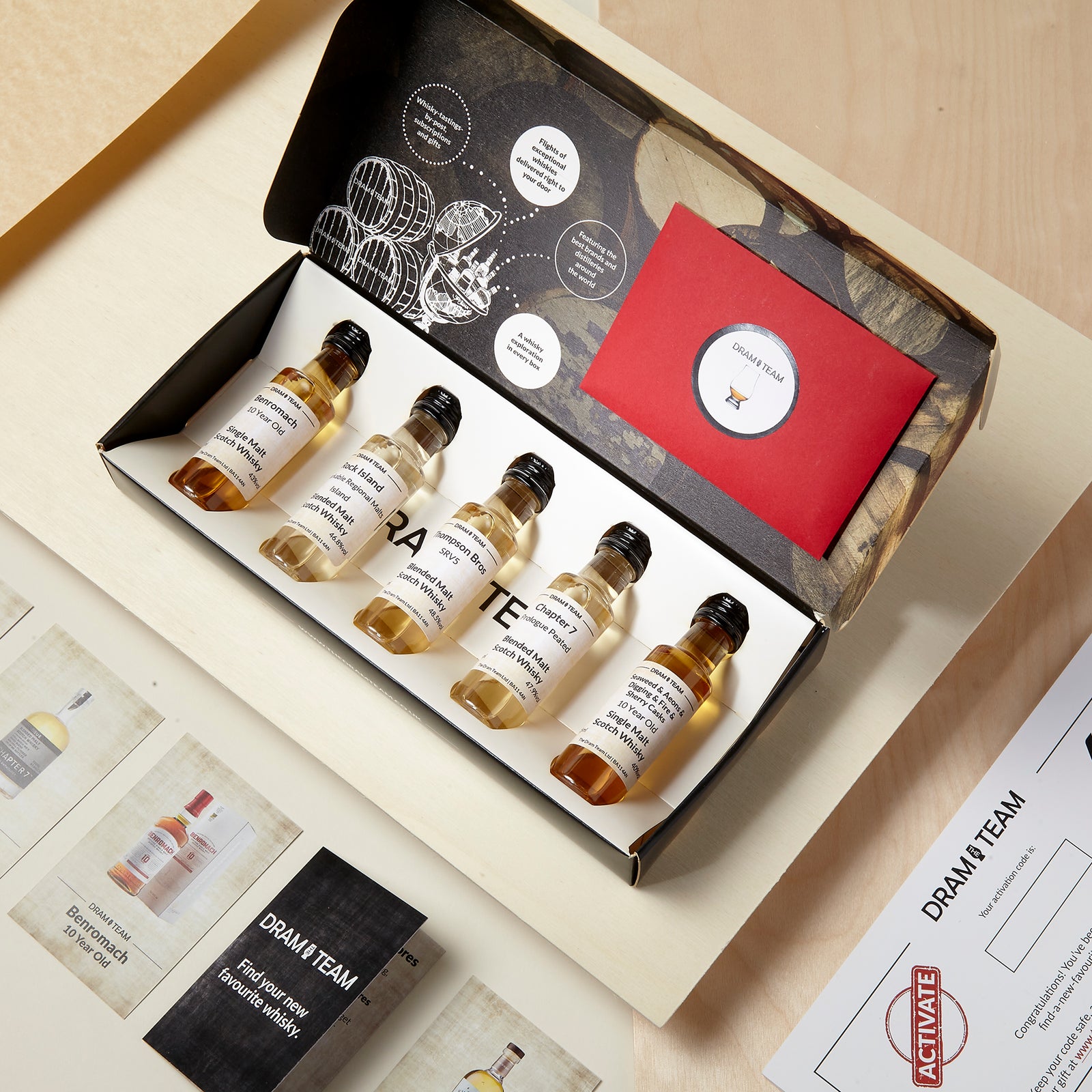 The first box always contains a letter with instructions on activating a gift and scoring whiskies. This is done on our website.